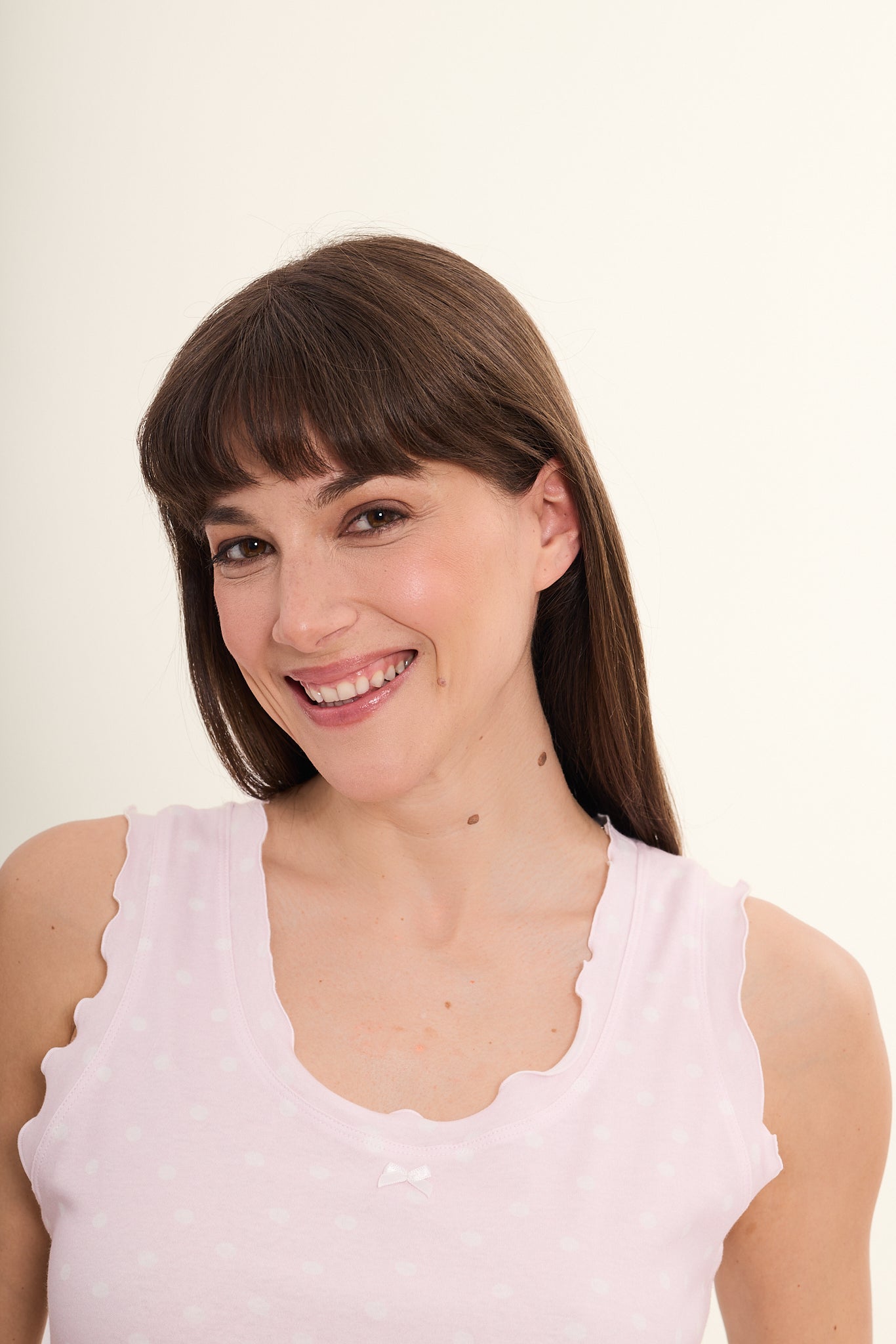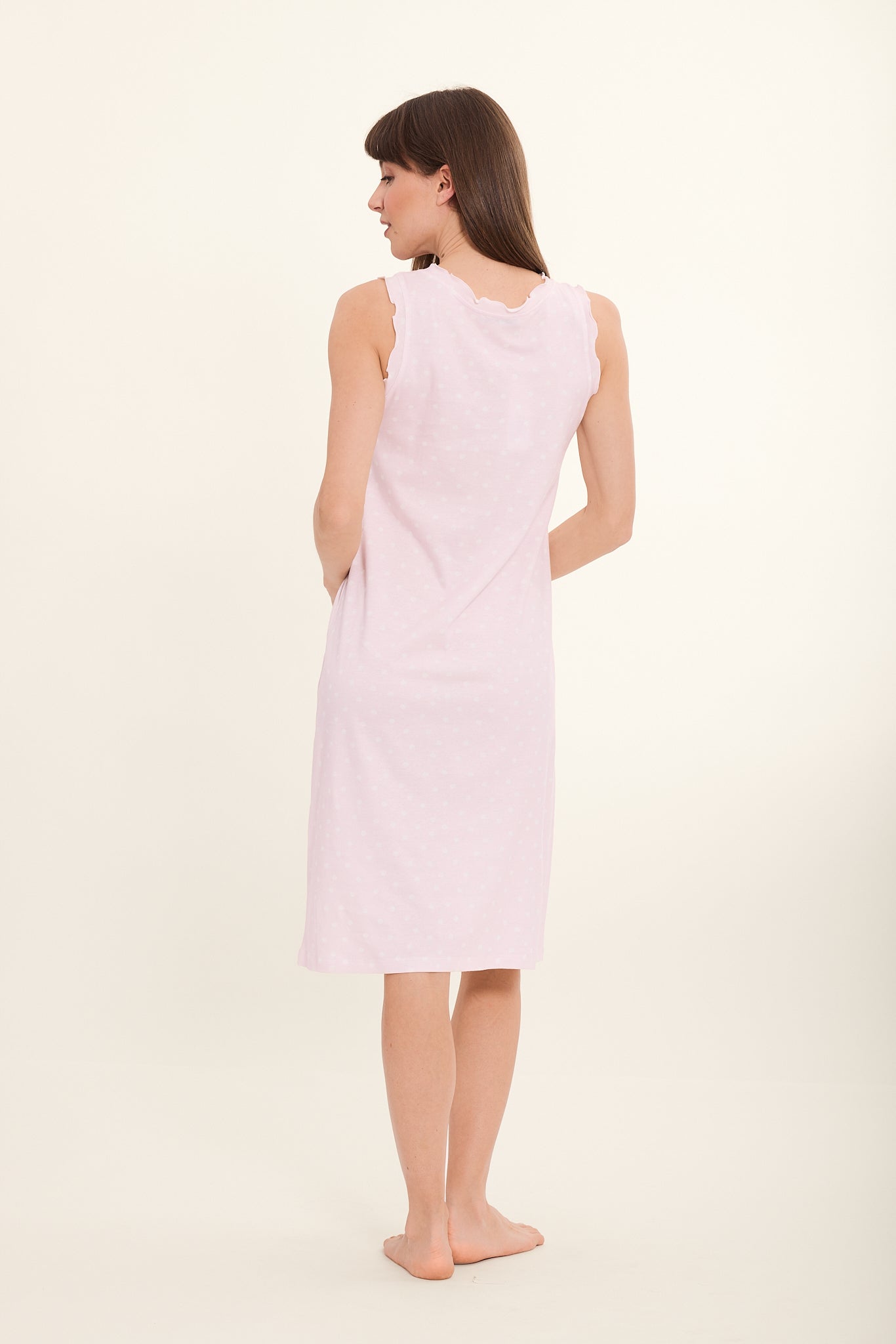 - reduziertes Nachthemd mit Tupfen und Rüschen