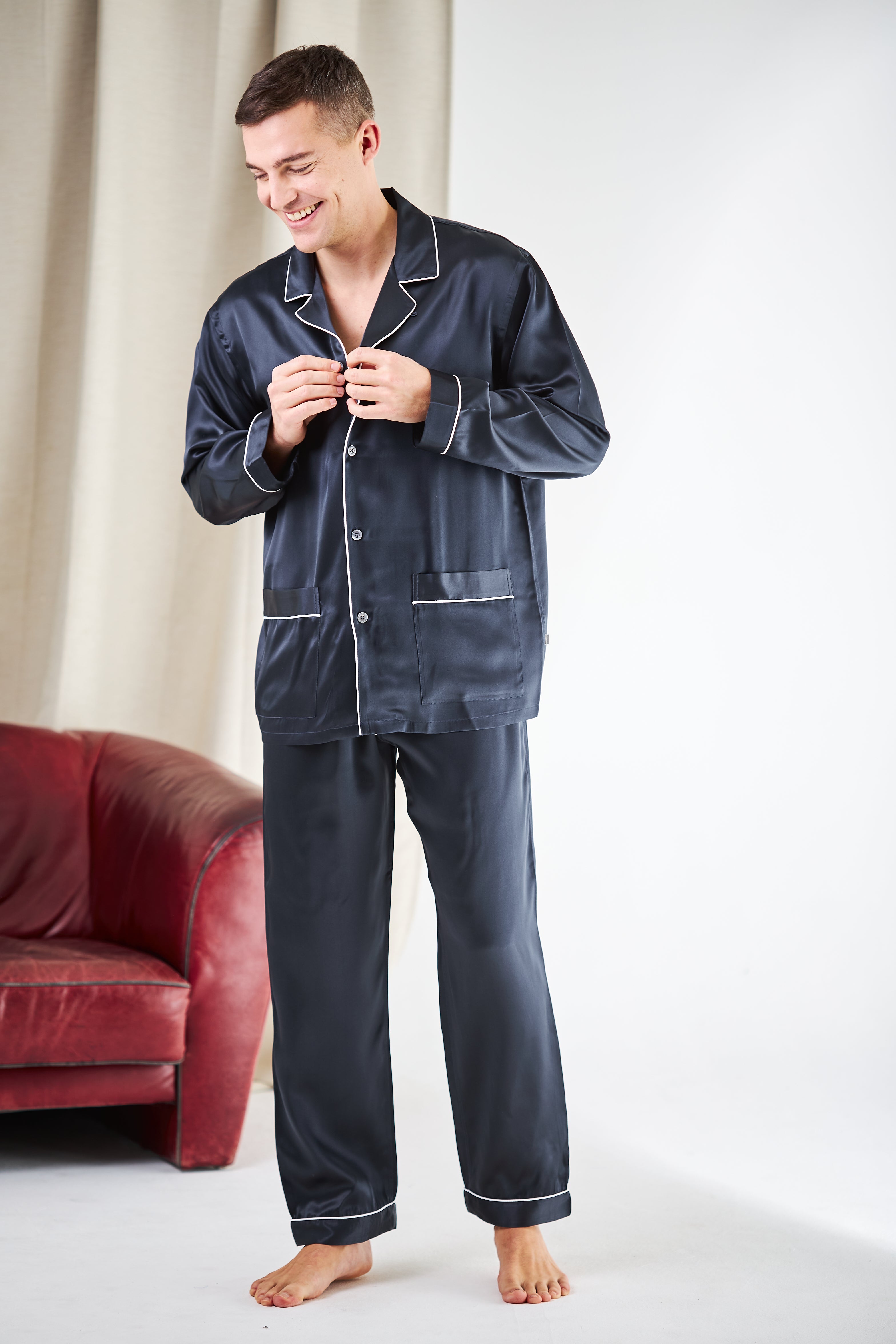 Perlmuttknöpfe runden den exklusiven Pyjama perfekt ab